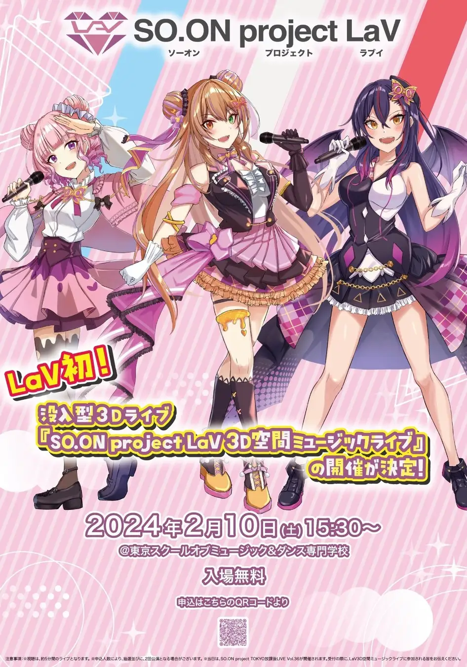 ますます精力的に活動を展開する「LaV」ですが、2024年2月10日(土)、東京スクールオブミュージック&ダンス専⾨学校(TSM)を会場に、「SO.ON project LaV 3D空間ミュージックライブ」の開催が決定しました。