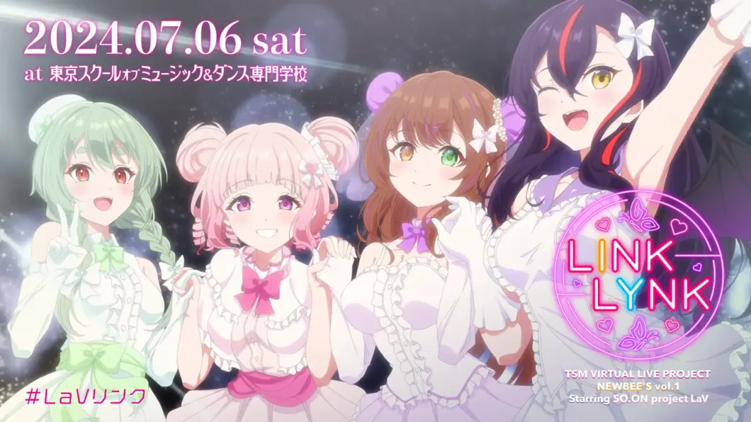 JIKEI COMグループの東京スクールオブミュージック&ダンス専⾨学校(TSM)⾼等課程から誕⽣したバーチャルアイドルプロジェクト「SO.ON project LaV」が、2024年7⽉6⽇(土)、リアルワンマンライブ「TSM VIRTUAL LIVE PROJECT NEWBEE’S vol.1 Starring SO.ON project LaV 『LINK LYNK』」への出演が決定しました。